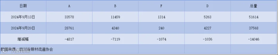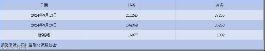 以上表单中的数据完全由川钢协信息统计部人员客观采集自相关钢厂、库房和贸易企业,川钢协力求数据及内容的准确、客观,但不能保证其完整性或准确性;本数据简报仅供浏览者参考,并不构成建议,川钢协不对该数据、简报及使用该数据和简报所导致的结果承担责任。