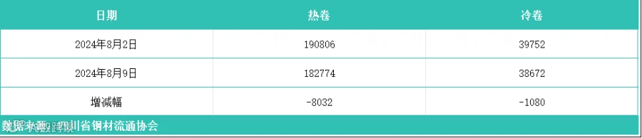 据四川省钢材流通协会统计,本周成都地区样本库房中热卷库存量为182774吨,较上周增减少8032吨。冷卷库存量为38672吨,较上周减少1080吨。