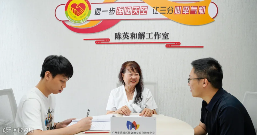 广州市黄埔区综治中心陈英和解工作室调解纠纷现场。
