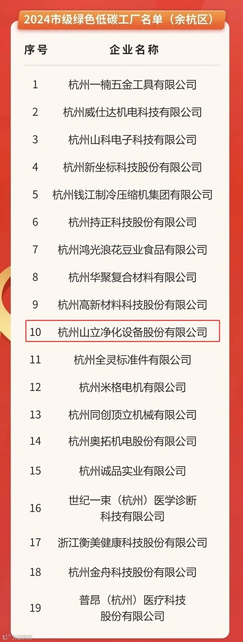 近日,杭州市经济和信息化局(杭州市数字经济局)发布了2024年度市级绿色低碳工业园区工厂认定名单,杭州山立净化设备股份有限公司榜上有名,在绿色低碳事业上,再度实现里程碑式突破。