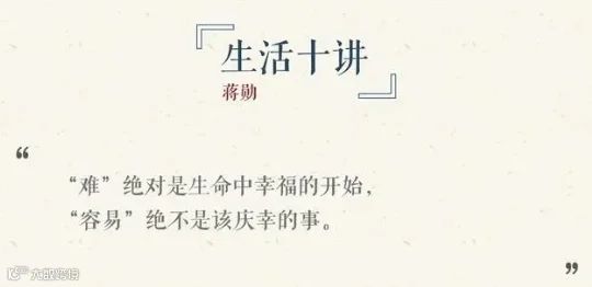 《生活十讲》选取生活中的十个侧面:价值、官学、伦理、信仰、物化、创造力、文学力、爱与情、情与欲、新食代,借用生活中的点点滴滴,反映文化的本质。这些内容都是我们在生活中面临到的,伦理价值信仰爱情,关乎到人的精神生活。蒋勋娓娓道来,文辞优美,直指本质,悲悯却并不忧伤。在这个问题迭出的时代,相信这本书能带来一股发自内心、温暖而坚定的力量。