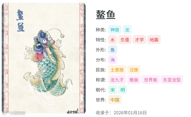 网站逐渐建立起更规范的词条结构,每个妖怪条目都有明确标签:种类、特性、外形、分布、民族、称谓、朝代、世界,词条下方则是原创介绍和详细的文献来源,古籍皆为原文收录,并附译文。
