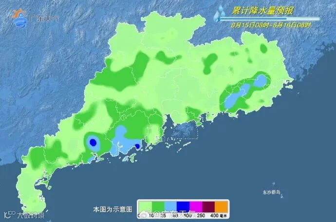 15日白天,降水明显减弱,粤西、珠江三角洲和清远中到大雨局部暴雨转阵雨,其余大部市县多云,有阵雨。最高气温:全省市县普遍介于30~33℃。