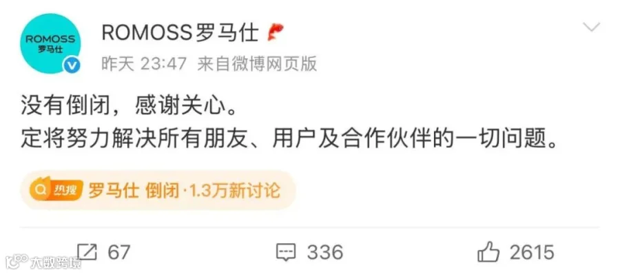 同日深夜,罗马仕官方微博发布消息称:“没有倒闭,感谢关心。定将努力解决所有朋友、用户及合作伙伴的一切问题。”