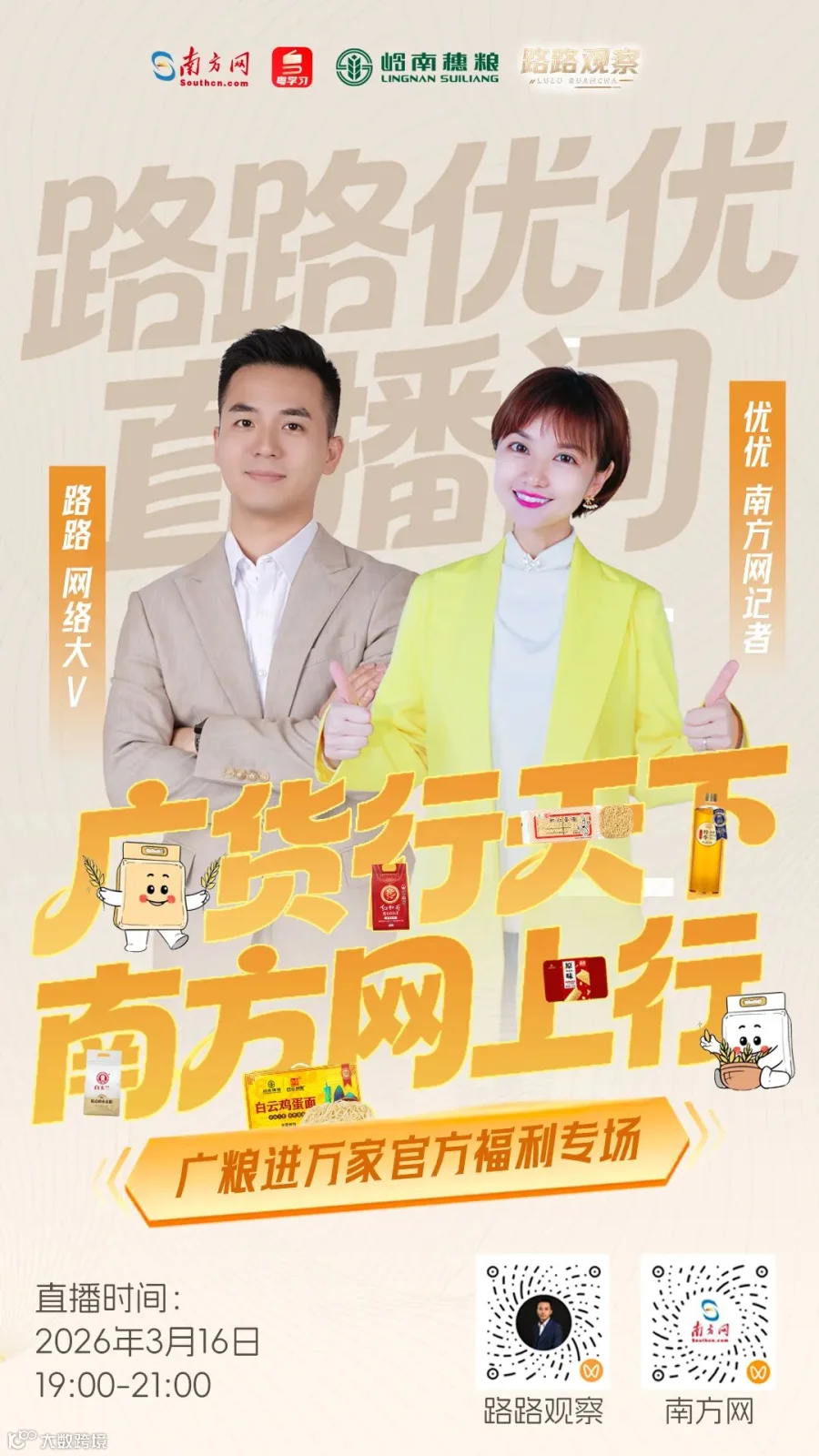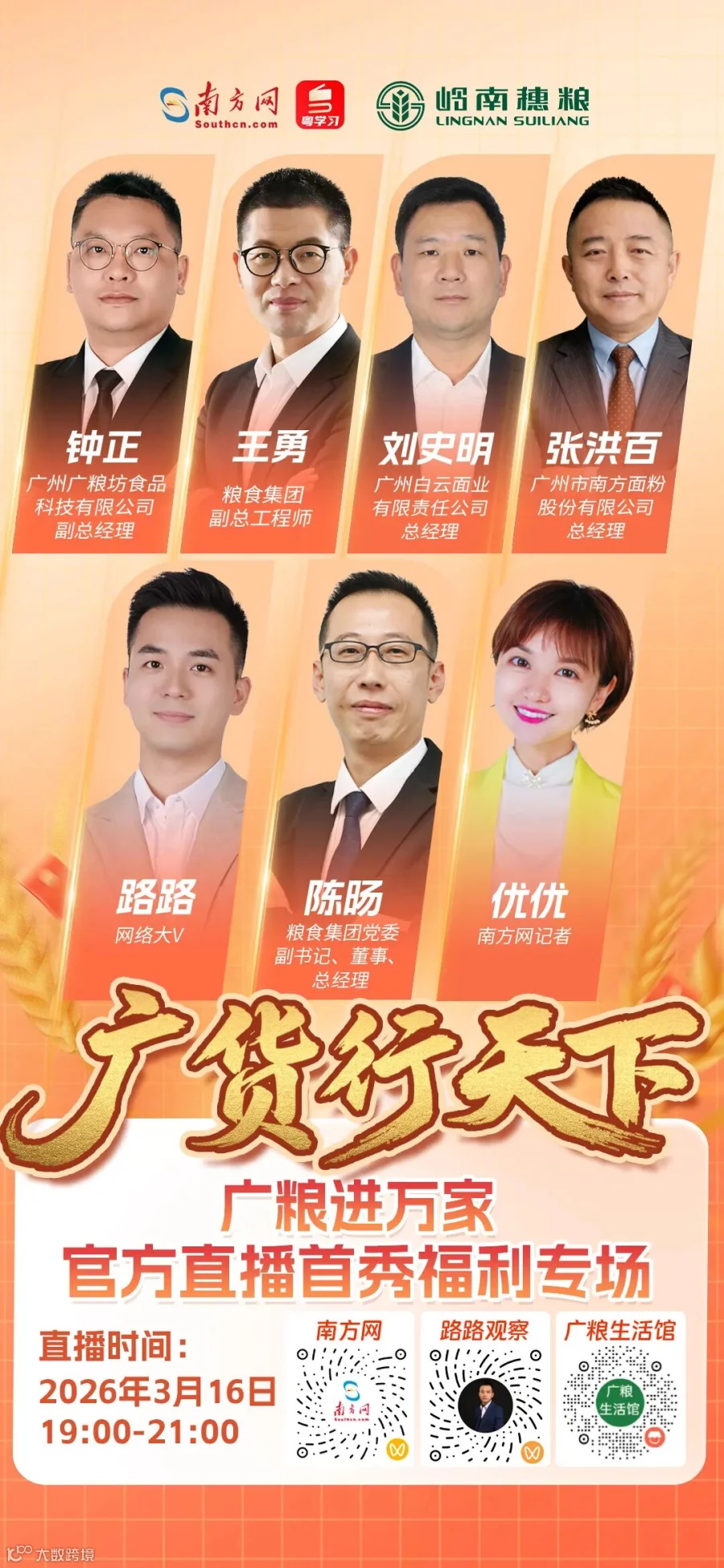本场直播,南方网携手广州市粮食集团,聚焦市民“餐桌刚需”,让“老广”味、放心粮走进更多家庭。