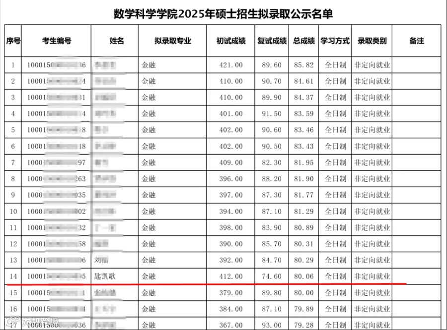 (以下称北大数院)金融专业(拟录取名单)。