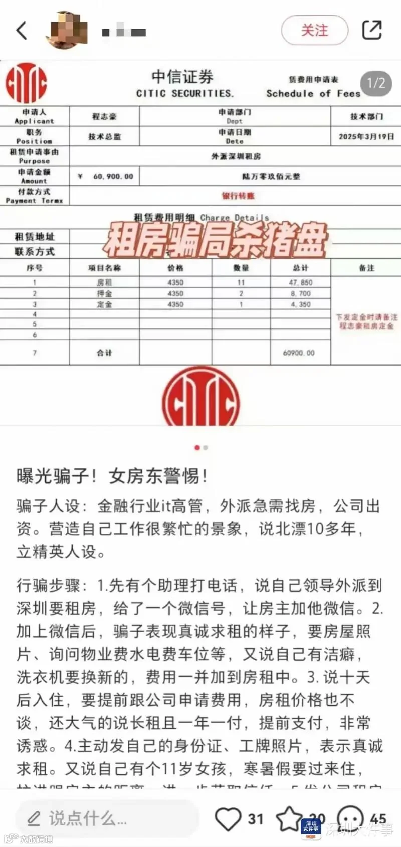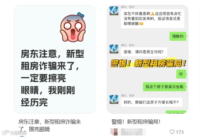 2024年1月,“深圳公安发布”发过一则推文《当心!这种新型诈骗已盯上房东!》,提醒房东们: