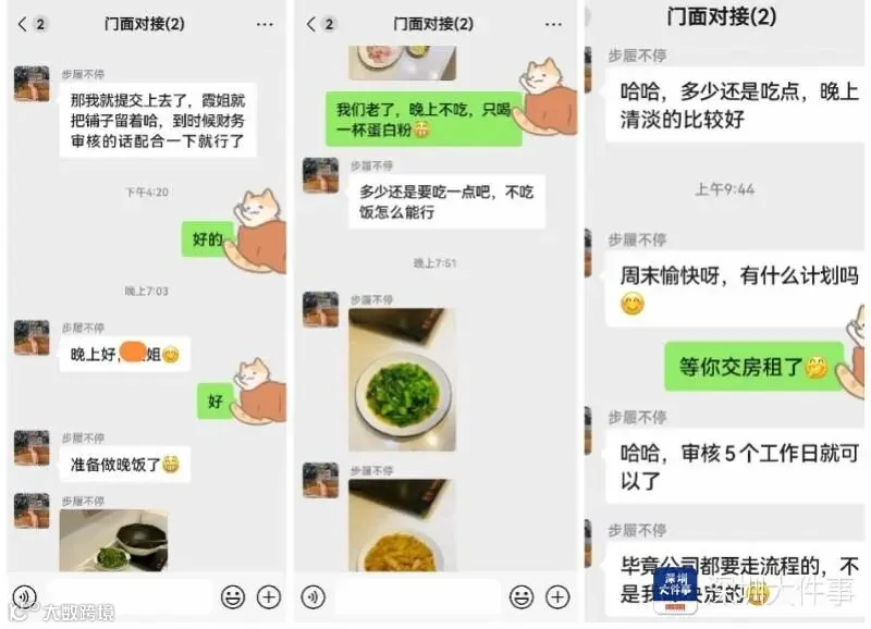 但接下来,租客会以向财务走流程为由,迟迟不给诚意金和租金,在等待过程,主动找房东聊天,先聊生活,偶尔植入工作信息,逐步树立起这样的形象: