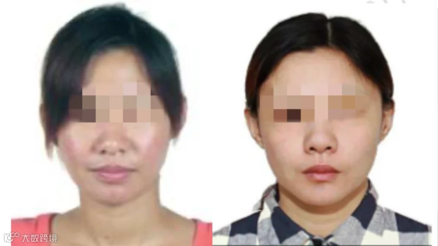 女嫌疑人隆鼻、定制双眼皮(左:整容前,右:整容后)