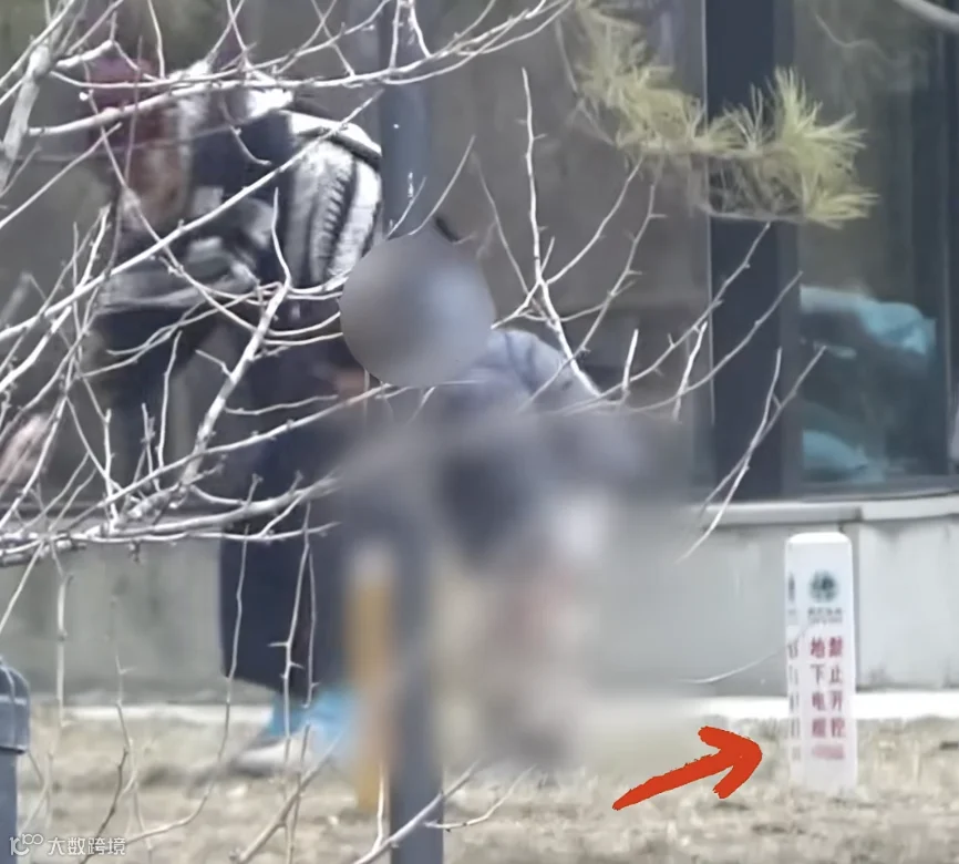值得一提的是,视频画面还显示,白百何带两个孩子解决内急之处,旁边有一个“地下有电缆”的提示牌。