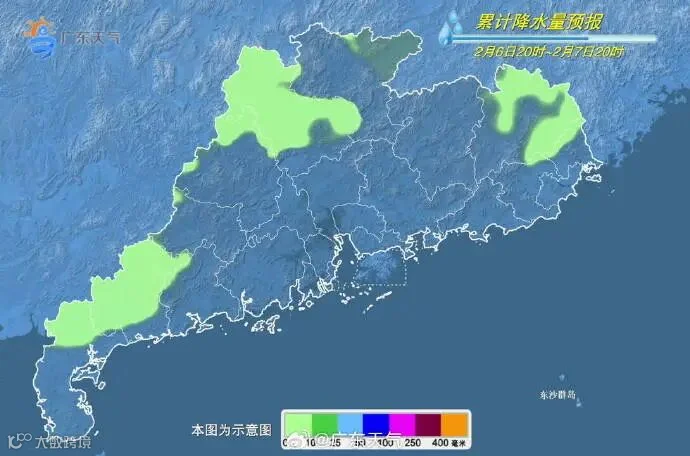 2月9日,粤北市县多云转小雨,其余市县多云,局部有小雨。粤北和珠三角北部市县3~7℃(高海拔山区1~3℃),雷州半岛市县15~18℃,粤东市县7~9℃,其余市县9~12℃。