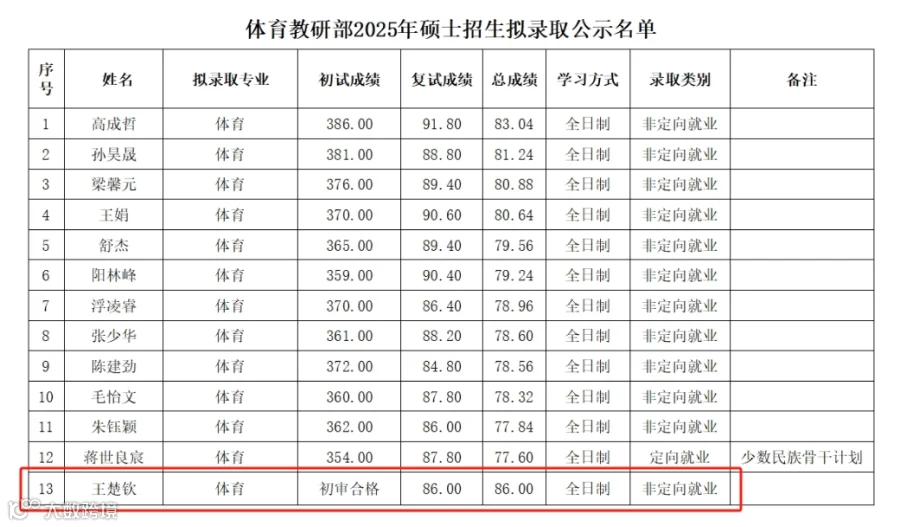 4月2日,北大体育教研部公布2025年硕士招生拟录取公示名单。名单中出现了