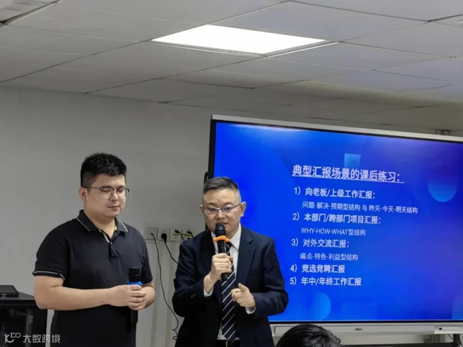 在商务表达授课环节,卢中伟讲师以其独特的理论体系、丰富的销售实战经验,以四大思维为主干,结合生动的案例,全面传授PPT商务表达的技巧与要点,并深入剖析向上沟通、演讲汇报、业务交流等不同场景下商务表达的核心要素,包括内容组织、视觉呈现、语言表达等方面,并针对公司的特点和需求,在互动环节中提供了针对性的建议和指导。