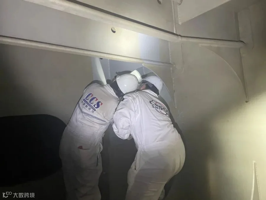 在此期间,船技工程技术人员的工作就是紧追其后做好监管,查验工程效果,检查整改情况,不停穿梭在狭小的空间,有的在大仓里“攀岩”,有的脚手架式“跨栏”,有的管弄里“抱腿式蛙步走”,巡查一轮下来不亚于“半程马拉松”。最终在各方相互沟通、合理分工、全力协调下,高效高质完成全部项目任务。