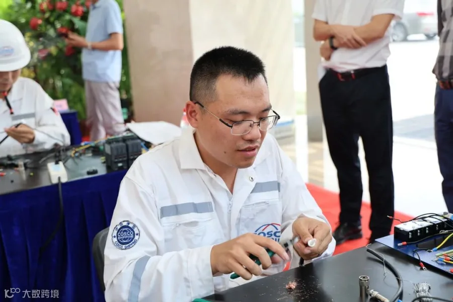 此次竞赛,包括理论笔试和实操竞赛两部分,其中理论知识比赛占总成绩30%,技能操作竞赛占总成绩70%,按照最终分数分设团体奖及单项奖。来自船技工程通导技术、智能制造、创新实验室等岗位20余名技术能手组成三支队伍同台竞技。