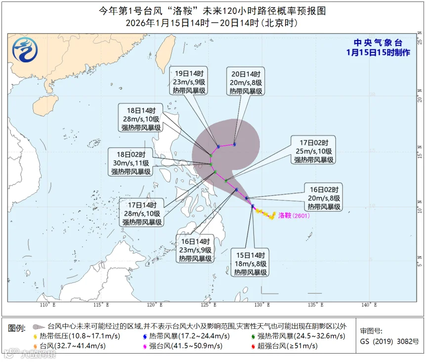 据中央气象台最新消息,1月15日14时,今年第1号台风“洛鞍”生成,预计未来不会进入南海,对广东省无直接影响。