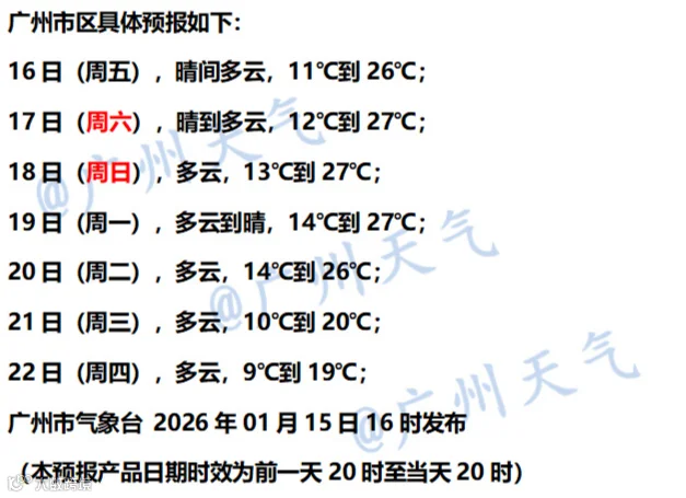 广州市气象台预计,下周四(22日)广州气温“大跳水”,早晚冷意十足。1月22日,广州最低气温或迅速下降至仅9℃。