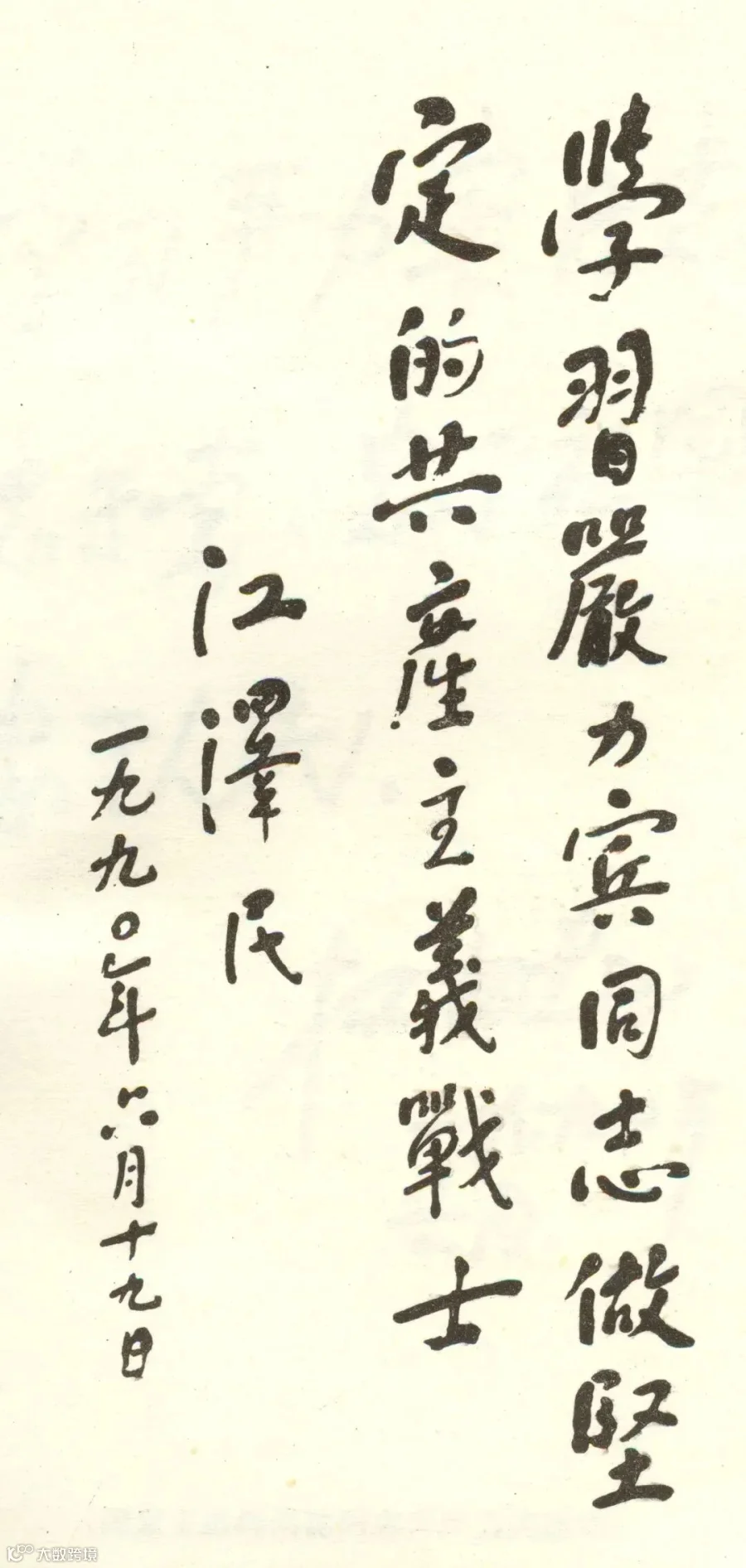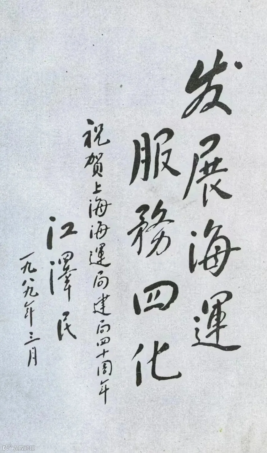 1989年3月,江泽民同志为上海海运局建局四十周年题词:“发展海运,服务四化”。
