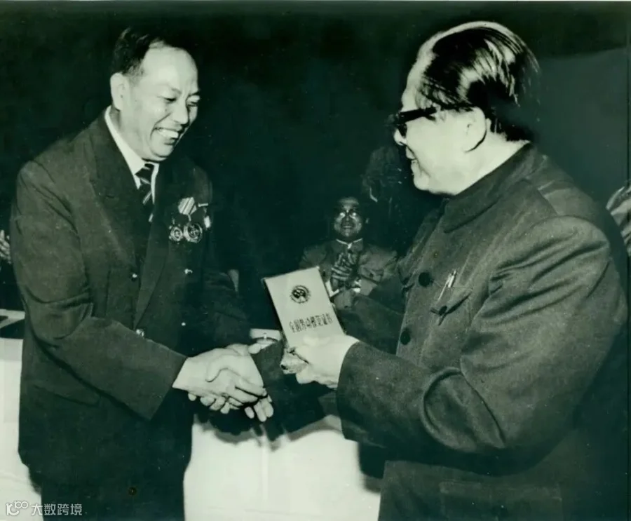 1985年11月,江泽民同志受国务院委托向杨怀远授予全国劳动模范证书。