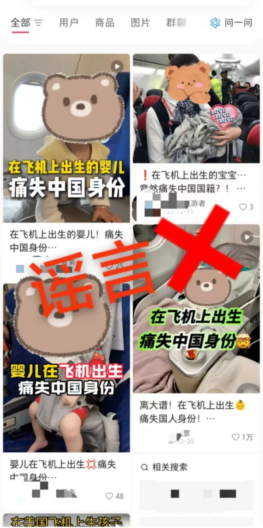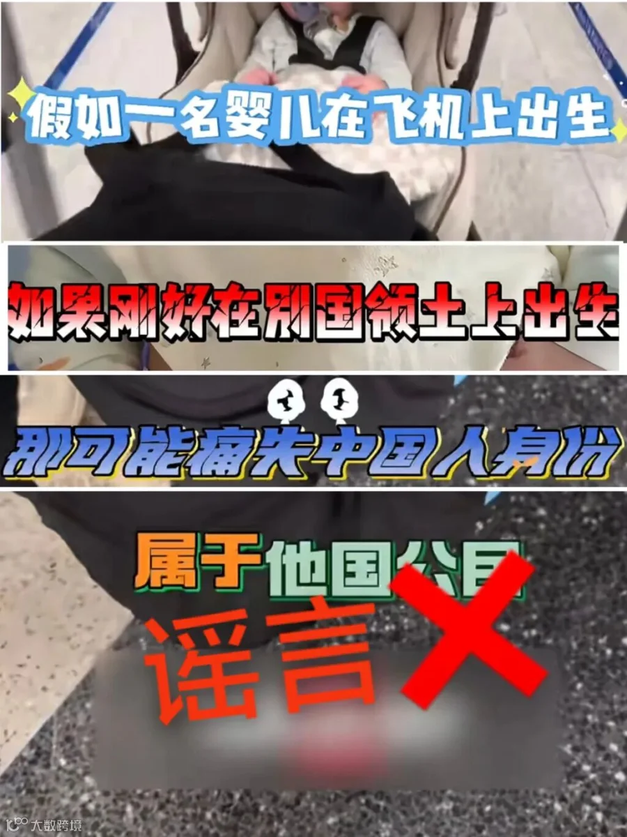 记者浏览某社交平台发现,不少从事机票代理、旅行业务代理的自媒体账号发布视频表示:“如果一名婴儿在飞机上出生,刚好在别国领土上空,他可能痛失中国人身份,属于他国公民。”