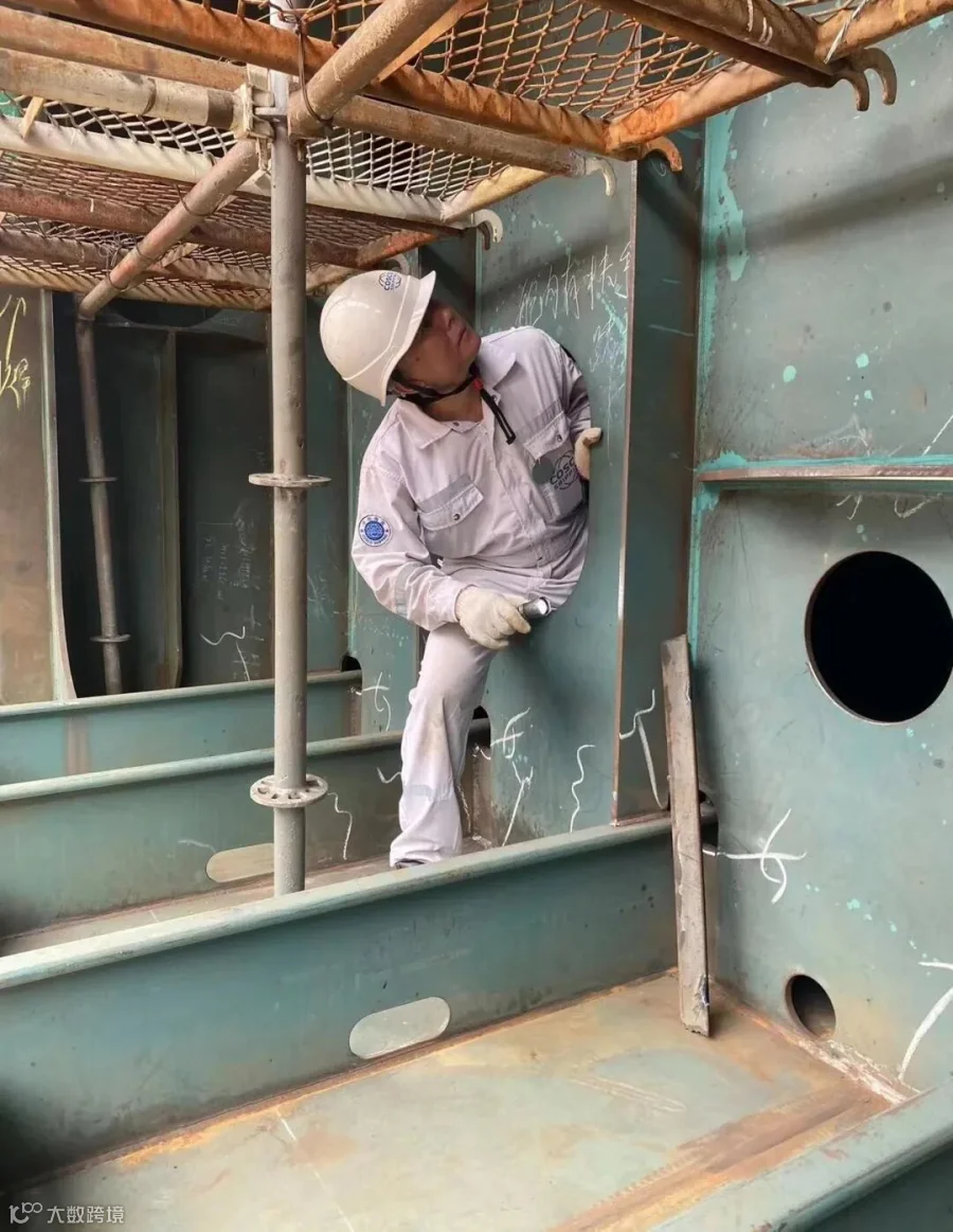 该船半船于3月14日进坞,起浮涉及到54个分段。54个分段的厚板焊接,厚板用量大、焊接技术要求高,报验工作量也随之增加。为了保半船起浮节点,在船舶监造党支部书记李拥政的带领下,监造人员每天马不停蹄奔走于船坞、总组场地区域,开启24小时全天候检验模式,在保证质量的前提下,积极配合船厂保证总组、焊后、密试和涂装等生产进度,只要达到报验条件,监造组人员便“随叫随到”。