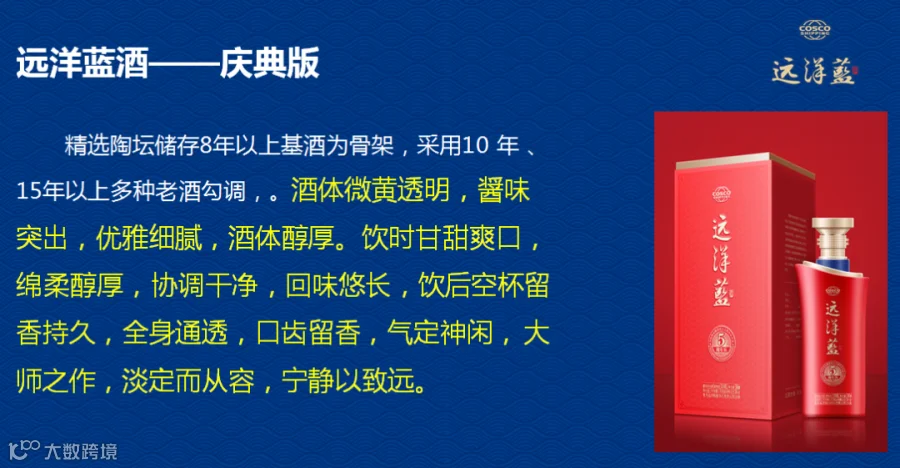 “远洋蓝”白酒产自茅台镇,产地位于“聚灵泉为一身,借惠水而东下”的赤水河畔,与茅台酒厂隔河相望,共享得天独厚的酿造资源,“远洋蓝”酒厂拥有30多年的酿造历史,300多口古老酒窖池,传承千年酱香酒酿造工艺,采用当地酿酒原材料——红缨子有机高粱,这种酿酒高粱颗粒坚实饱满,富含单宁,所产白酒香味物质极其丰富,口感细腻,欢迎广大新老客户选购。