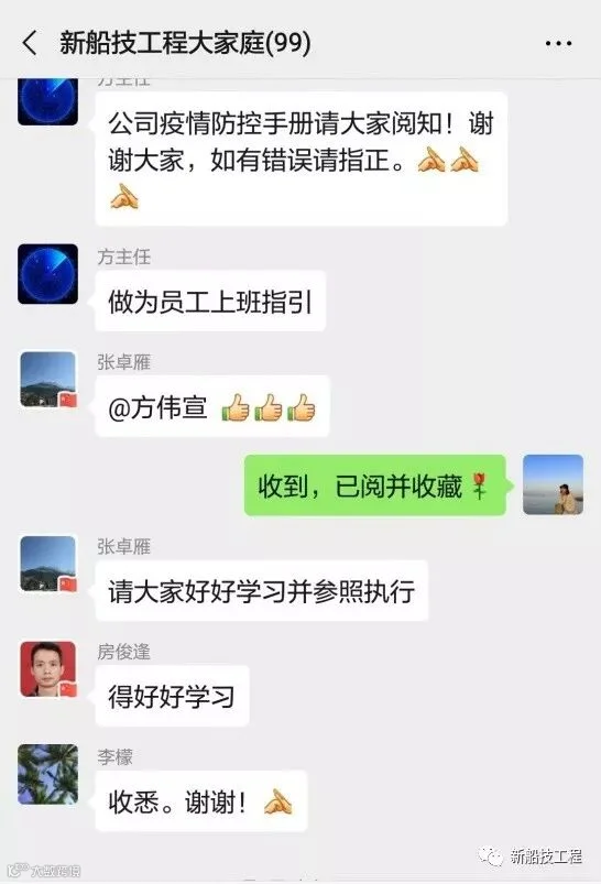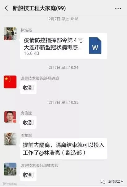 船技工程党委高度重视新型冠状病毒感染肺炎的疫情防控工作。自1月23日召开首次防控会议,响应上级号召成立由何向宁总经理、马云涌党委书记任组长的疫情防控领导小组和张卓雁副总经理任组长、马志华纪委书记任副组长的工作小组以来,公司防控小组督促、检查落实各项防治措施,依法开展各项预防控制工作。针对关键时期的员工返岗复工保障工作,船技工程把疫情防控作为首要任务,进一步细化实化疫情防控工作方案,制定了全方位的防控指南,确保安全复工、精准复工。