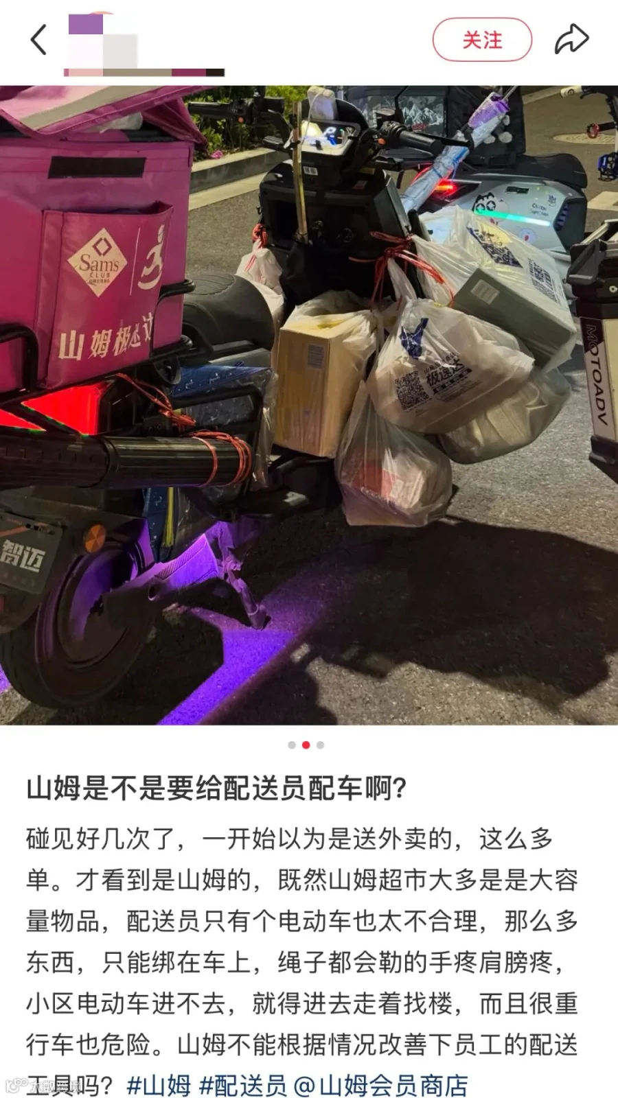 深究矛盾核心,是山姆商业模式与配送体系的错位脱节。山姆以“极速达”为核心卖点,却在配送硬件上“偷工减料”。依赖承载能力有限的电动车配送重货,本质是将成本压力转嫁给骑手,将安全风险转嫁给公众。然而,服务可外包,责任不可外包。骑手身着山姆制服配送山姆商品,消费者认知中就是“山姆配送”。一旦发生事故,即便山姆外包物流,也无法逃脱责任、独善其身,还会因此损坏品牌声誉,导致会员流失。