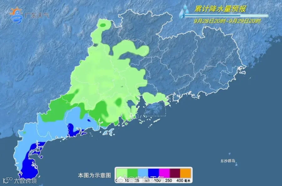 28日,粤西市县多云转大雨到暴雨,局部大暴雨,珠三角南部市县多云转(雷)阵雨,其余市县多云,局部有(雷)阵雨。