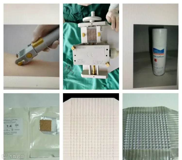 MEEK植皮是一种较为先进的皮肤移植技术,采用特制的切割刀具将皮片切割成微型小皮片,然后通过一种特殊的载体(MEEK植皮载体)将小皮片均匀分布并固定,再移植到创面上。小皮片在创面上成活后逐渐扩展融合,从而覆盖创面。