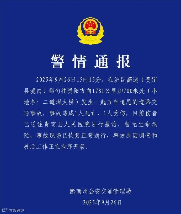 26日下午,有记者致电贵定县应急管理局,一工作人员表示,这起车祸发生在G60沪昆高速贵定往盘江方向,该局下午三点多快四点的时候接到的信息,然后立即安排了工作人员赶赴现场处置。