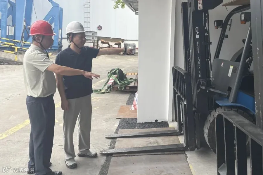 本次检查重点围绕仓库、堆场、停车场的排水设施运行状态、风险隐患排查整改情况、应急物资储备及道路运输安全管控等核心内容展开。同时,通过现场连线船舶绑扎现场管理人员,详细了解防台措施执行进度、人员安全安置方案及台风后续应对计划,要求全员以高度紧迫感进入“临战状态”。