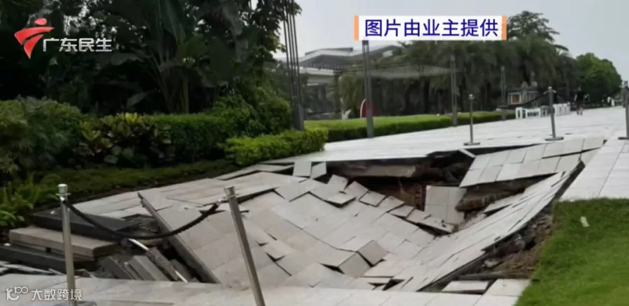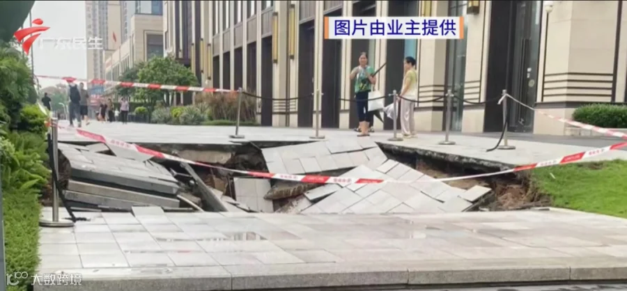 6月16日早上,广州增城时代名著小区的业主发现,小区人行通道突然出现一个大坑,地面塌陷地砖下沉。据了解,该小区才入住两年。