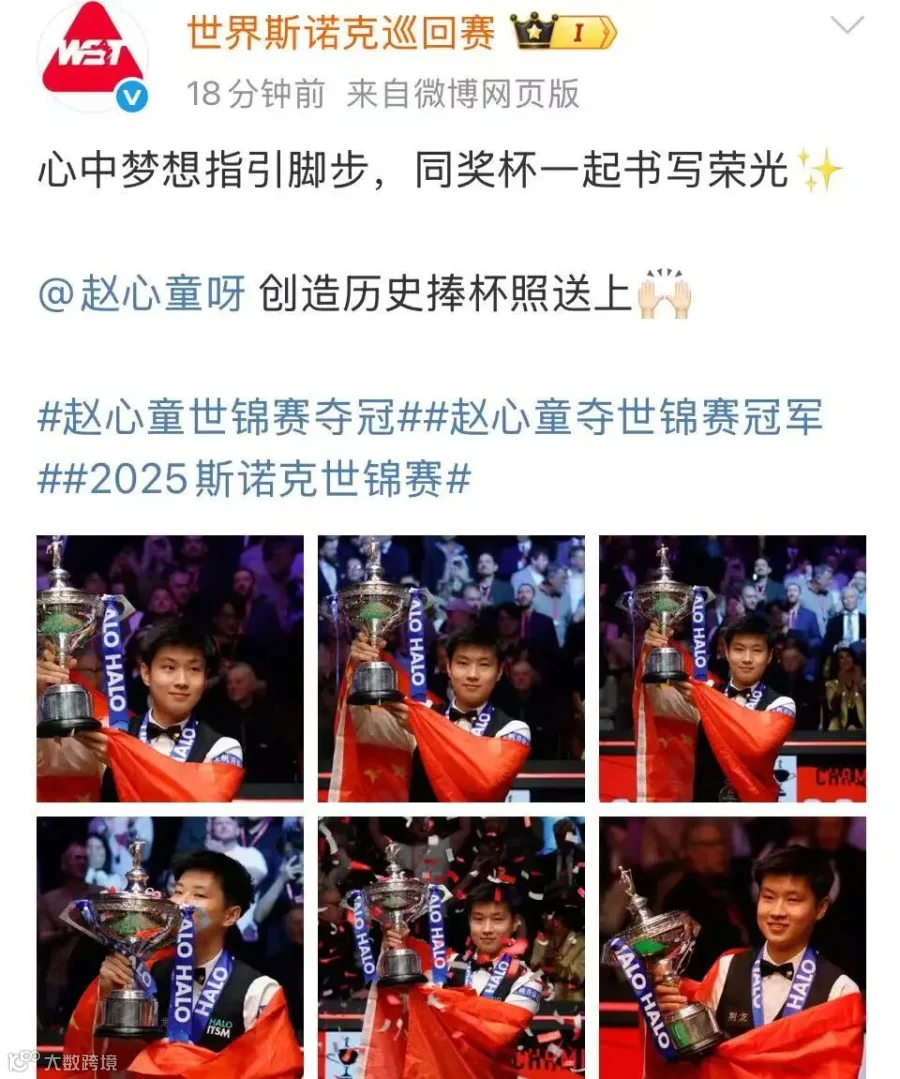 赵心童夺得斯诺克世锦赛冠军!