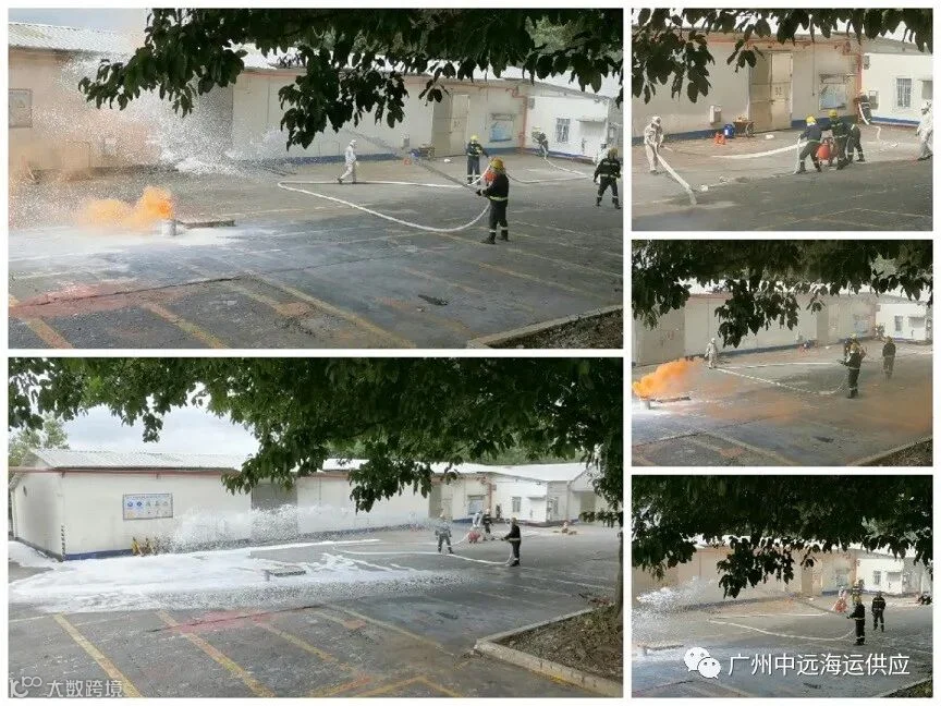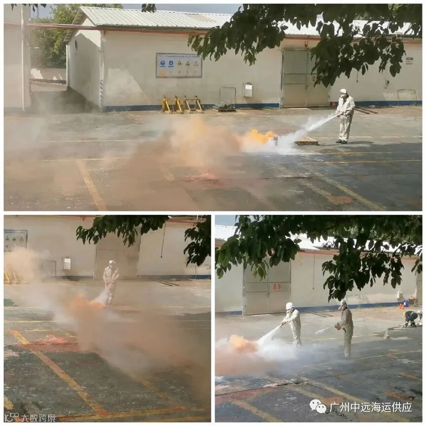 ▲ 听到消防警报后,应急救援组迅速集合,在现场救援指挥下使用泡沫灭火机对火势进行控制,最终把火扑灭。