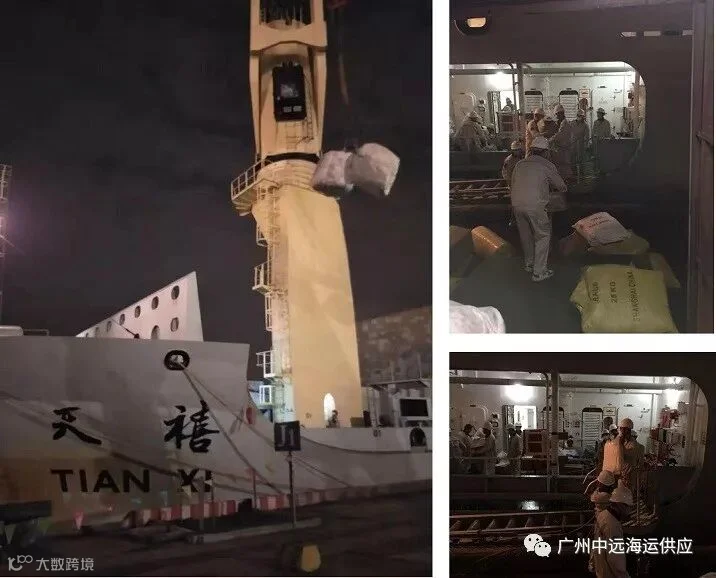▲代理/物流部夜里供应天禧轮物料。