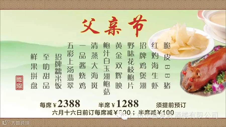导读:父爱如山,为爸爸们送上浓浓的感恩与祝福广州市喜爱轩酒楼有限公司官网微信号:XAXJLGZ
