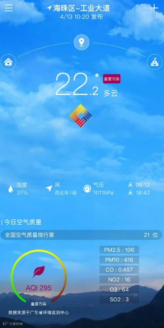 根据广东天气停课玲APP,广州一地显示“重度污染”。