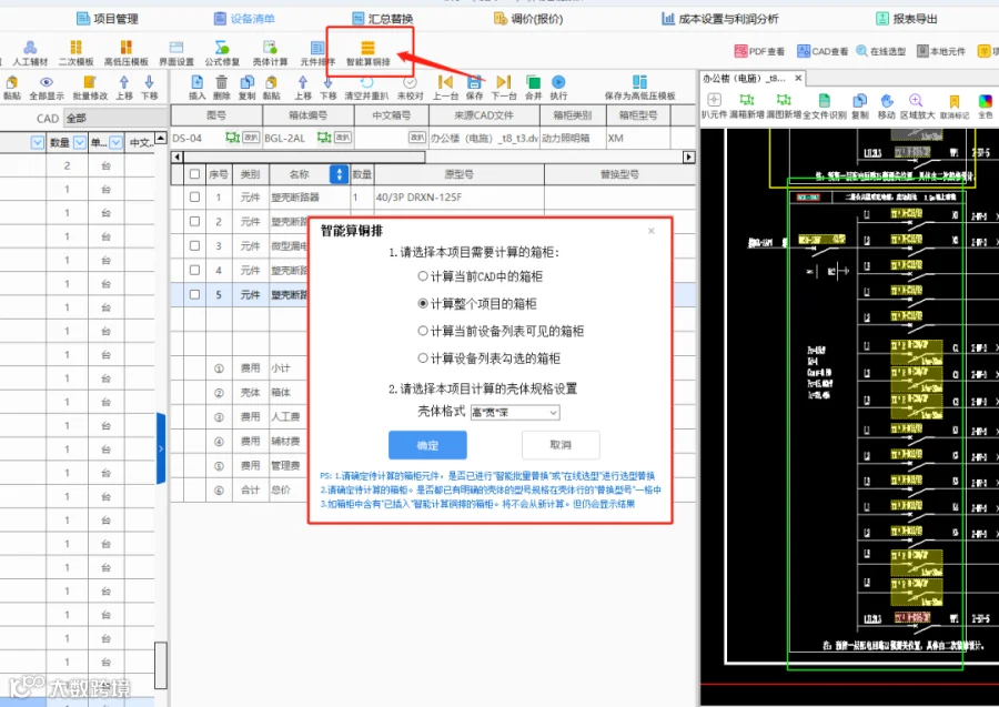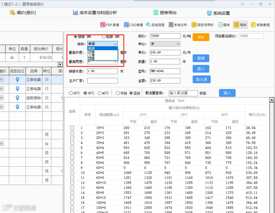 新增“智能算铜排”功能,实现高低压柜铜排智能计算。