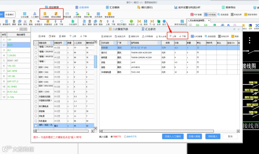 优化二次模板、高低压模板功能,增加元件“上移”“下移”功能。