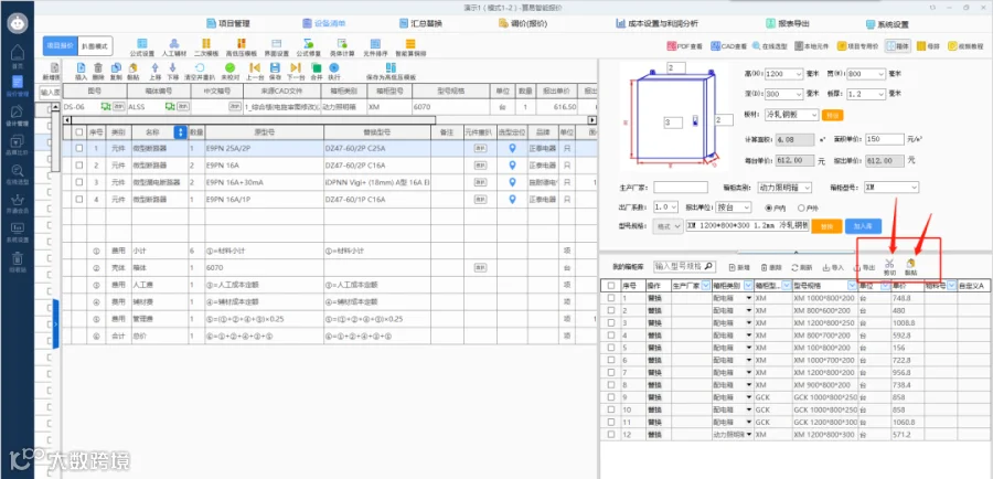 一款专为成套电气打造的报价软件,以智能识别CAD图纸为核心,批量替换品牌,集成选型菜单,自定义元件清单导出带公式表格等功能为特色。可以在这里快速处理报价的CAD图纸、查看项目处理进度、导出元件清单等。简单、灵活、易用,为您带来全新的报价体验。