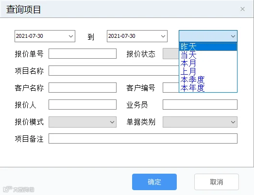 项目管理界面,新增“查询项目”可按日、周、月、季度进行查询项目,也可输入其他条件查询项目(点击“显示全部”可退出查询项目)。