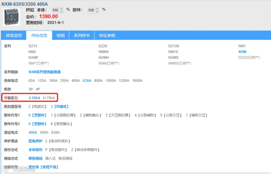 这个断路器的短路分断能力通常是指它的极限短路分断能力。