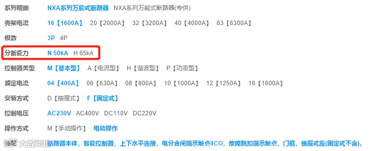 下表是施耐德及ABB的某款断路器参数表,供参考: