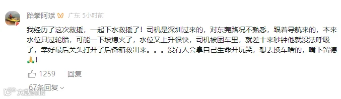 “当时水已经没过车顶,司机从车尾厢出来后身体虚弱,我们最害怕车上是否还有其他小孩和家人。”赵庆辉和温东林都表示同样的担忧,一边转移车主一边仔细确认车里是否还有人。最终,众人在9时33分将驾驶员转移上岸,距离小车遇险仅过去9分钟。