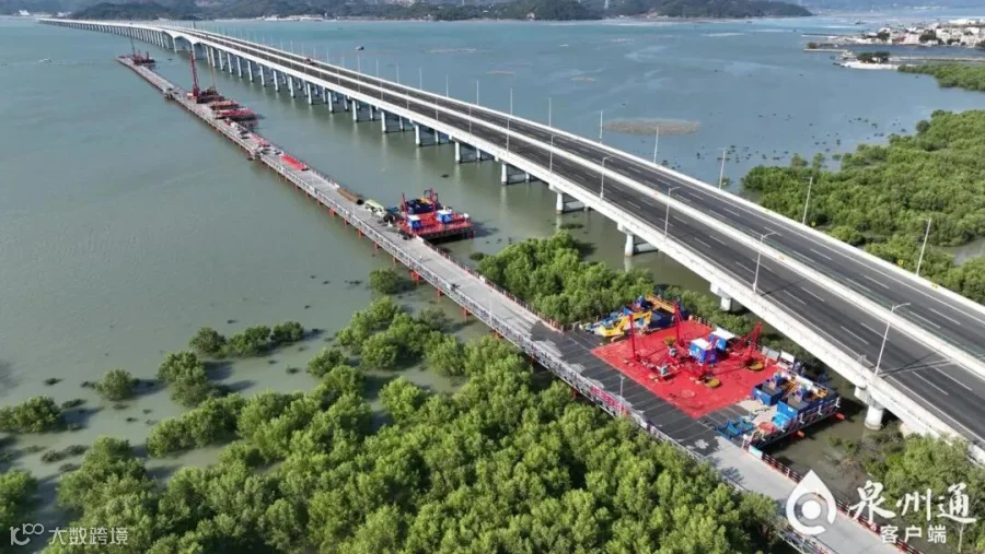 漳汕高铁漳江湾跨海特大桥桩基施工和栈桥施工(沈嘉鹏 摄)