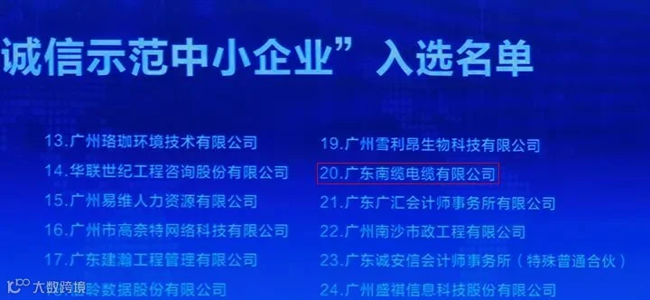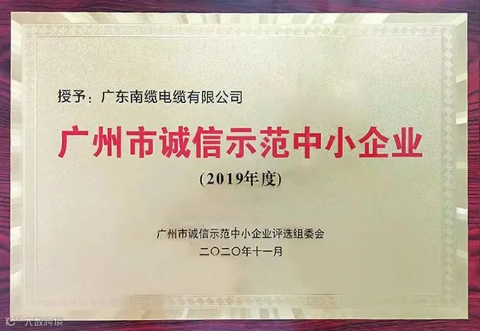 诚实守信,立业之本!它是企业赖以生存健康发展的土壤,广东南缆电缆有限公司在多年的经营生产中一直以此为信条,多年的坚守终于获得权威机构和社会各界的认可,在全市10万多家中小企业参与的诚信评比中脱颖而出:荣获《广州市诚信示范中小企业》2019年度荣誉称号,此次入选全市评选出30家,白云区评选出3家,我司为其中一家。