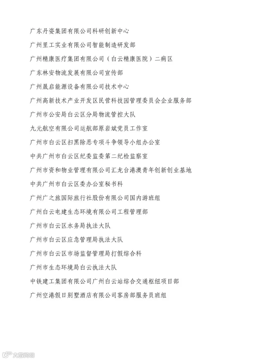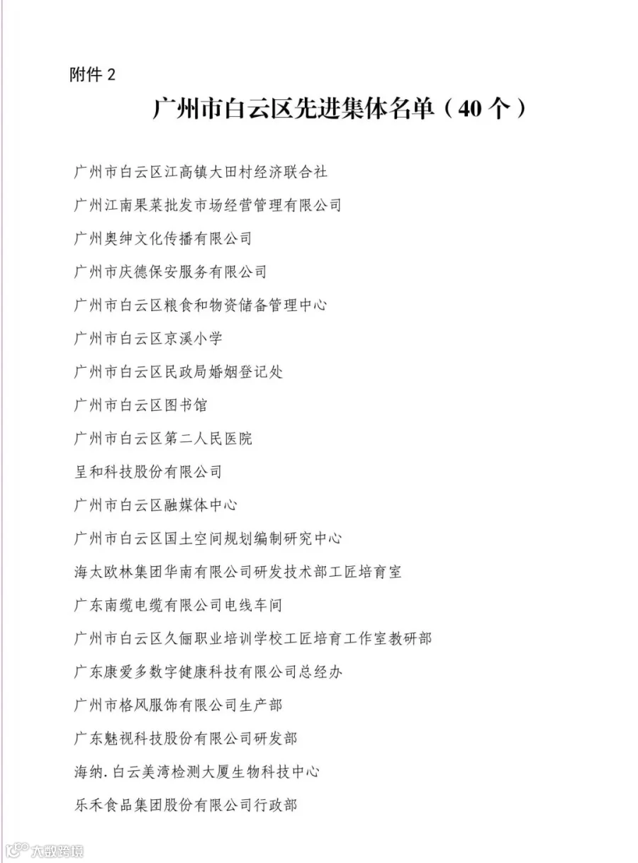 白云区先进集体名单