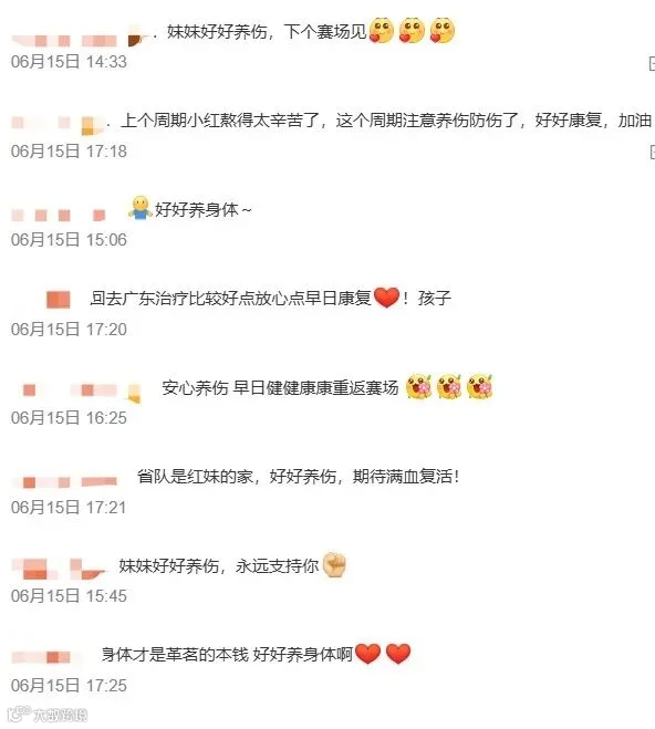 不少网友在评论区表示:希望全妹早日康复,重返赛场。