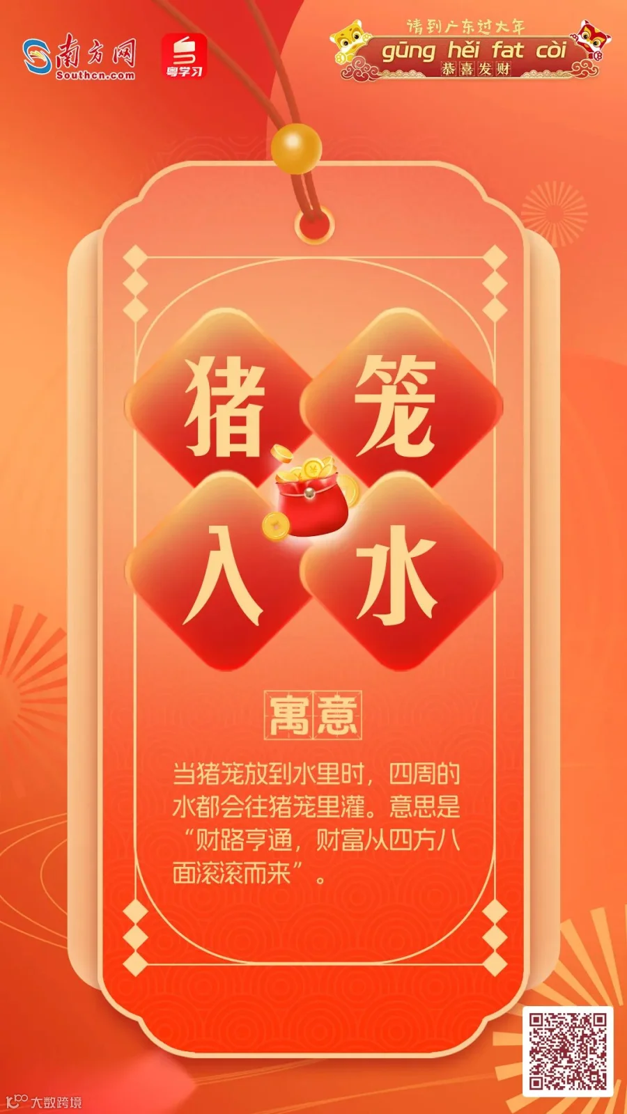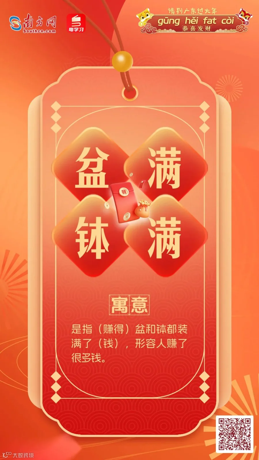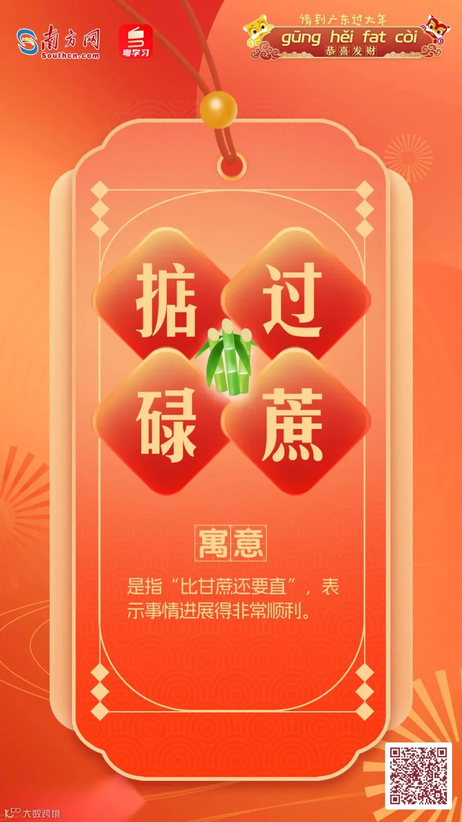 在广东,拜年话更是具有地方特色,春节期间最常能听到便是那句——“恭喜发财,利是㨮来”。南方君制作了几款“粤式”拜年话海报,快来选一张您喜欢的吧~